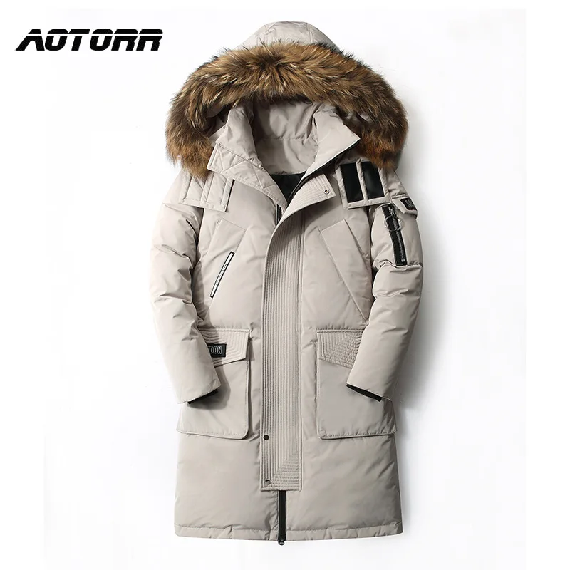 Мужские длинные пуховые парки, теплая ветрозащитная куртка со съемн...