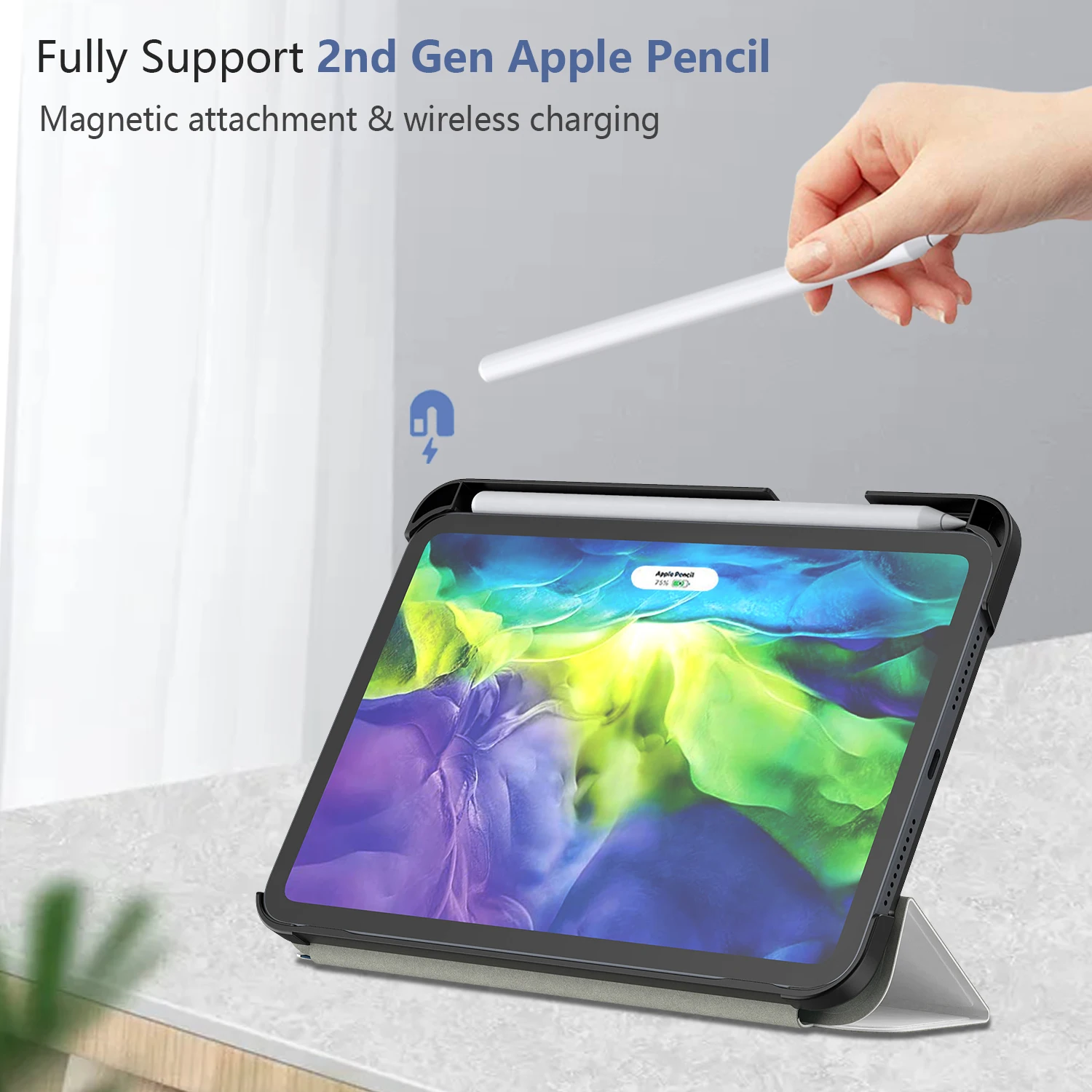 【 Встроенный держатель для карандашей 】совместим с магнитным креплением 2-го поколения Apple pencil и поддерживает беспроводную зарядку сбоку. Плотно удерживайте карандаш Apple Pencil. (карандаш не входит в комплект).
