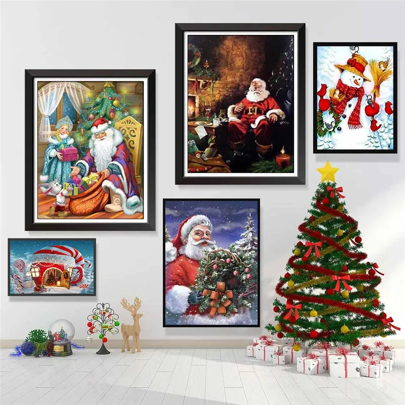 Новогодние и рождественские подарки для детей, холст с принтом Санта-Клауса, снега, художественная живопись, плакаты, принты, декор комнаты, картины