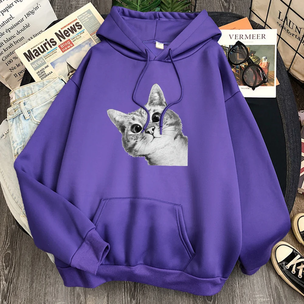 Толстовка Женская с принтом кота, Свободный Повседневный свитшот, с...