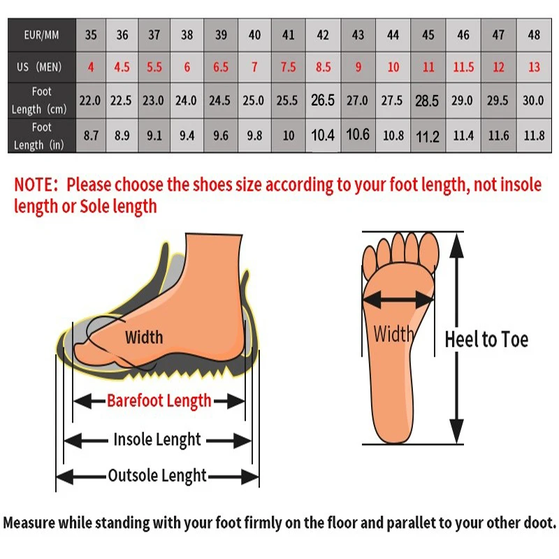 Примечание:1. Подходящий размер в таблице размеров-это максимальный размер,Допустимая погрешность около ± 5 мм. Перед оформлением заказа внимательно сравните таблицу размеров с длиной Вашей стопы.2. Пожалуйста, выберите наиболее подходящий размер в соответствии с нашей таблицей размеров! Это очень важно, спасибо за понимание и сотрудничество! Желаем вам приятных покупок!3. Если вы не знаетеКак выбрать правильный размерИли у вас есть какие-либо вопросы по этому продукту, пожалуйстаСвяжитесь с намиМы дадим вам удовлетворительные ответы как можно быстрее.