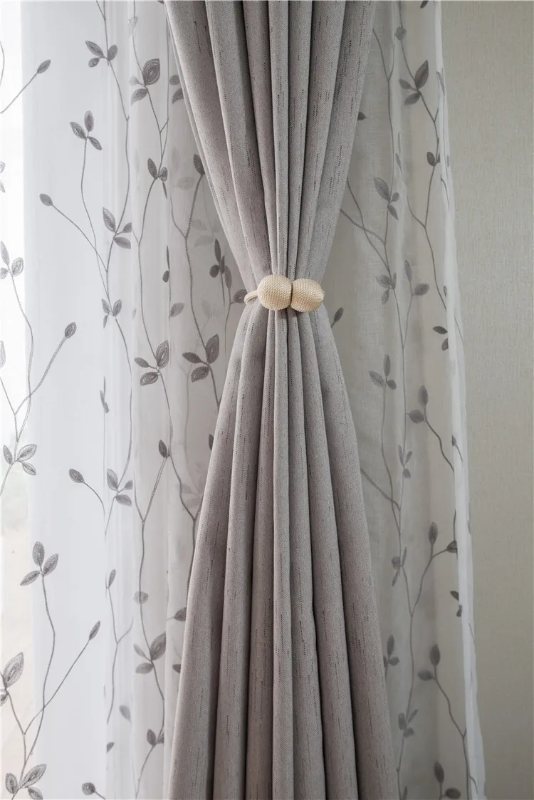 Занавески с белыми помпонами, тюлевые шторы с помпонами для гостино...