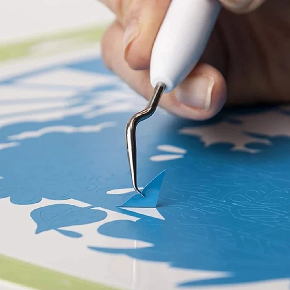 Шпатель точно поднимет изображения с режущего коврика, предотвращая разрывы и завивку. Все эти инструменты так легко снимают вашу работу с клейкого режущего коврика.