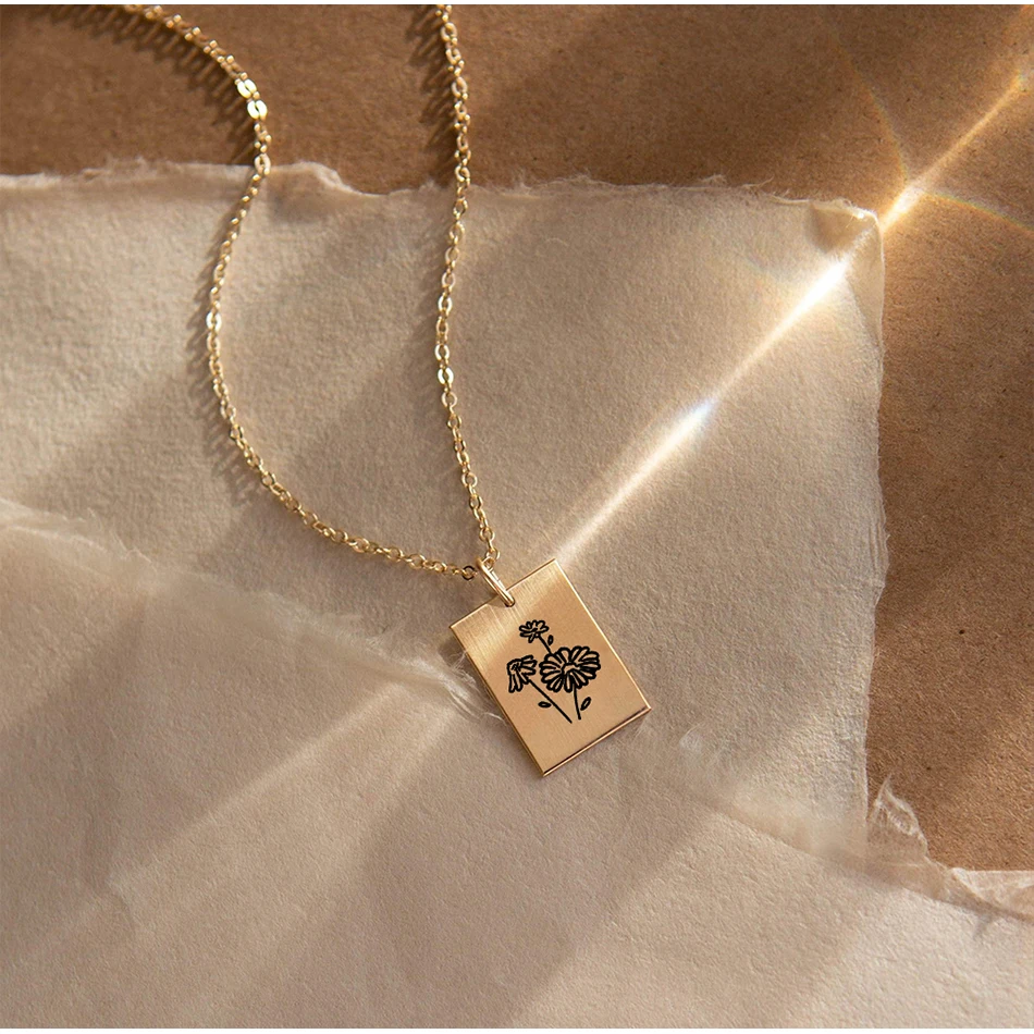 EManco, крупное ожерелье с лазерной гравировкой месячного цветка, прямоугольная Подвеска из нержавеющей стали, чокер, ошейник, Женские Ювелирные изделия