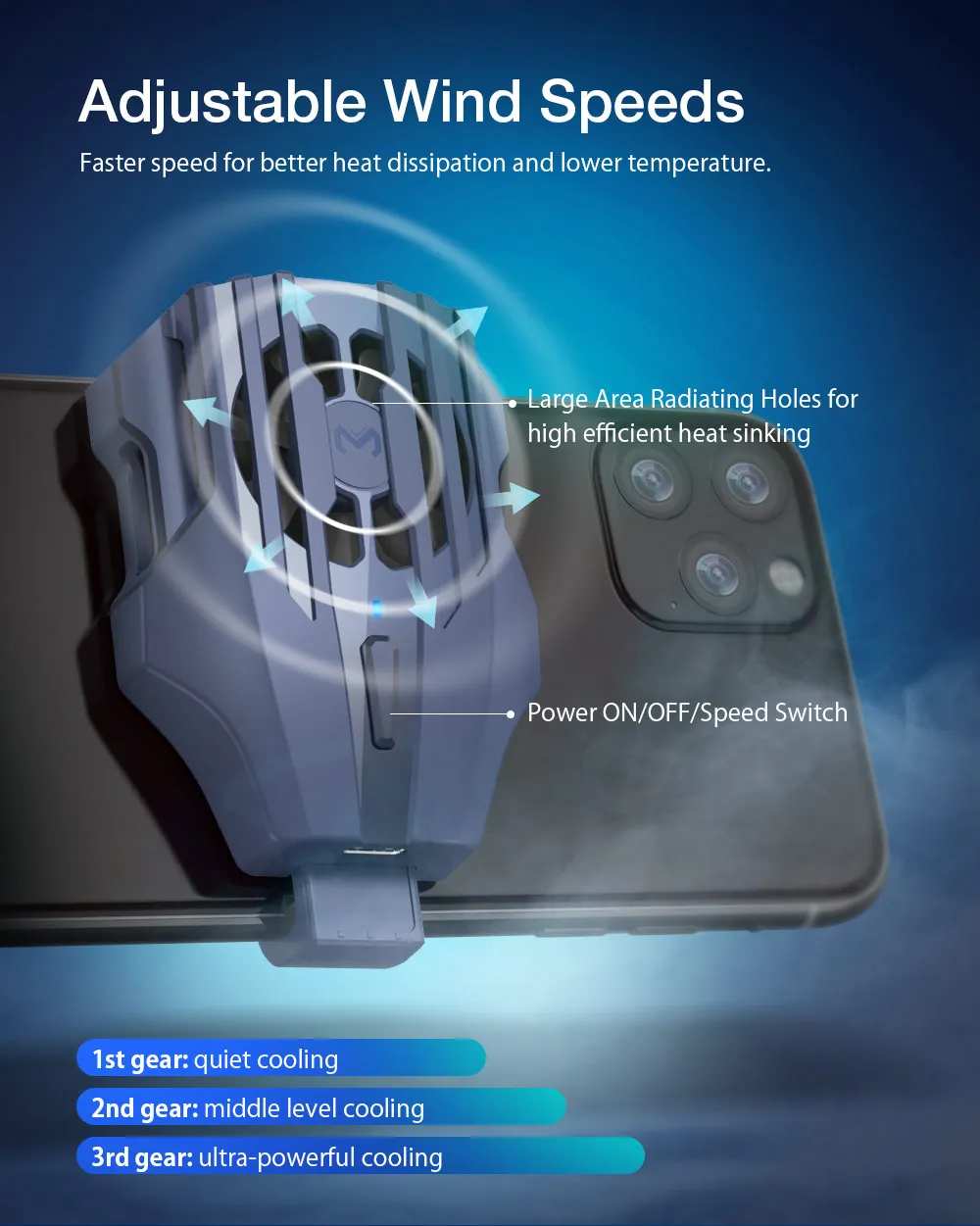 Мощный и быстрый ураган тепловыделение охлаждает процессор, предотвращая перегрев вашего телефона во время игры и продлевая срок службы батареи телефона