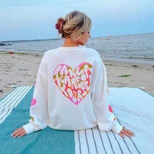 欧美 2021 秋冬爆品新款女装心形印花宽松型卫衣亚马逊代发外贸批发Юаней46,80