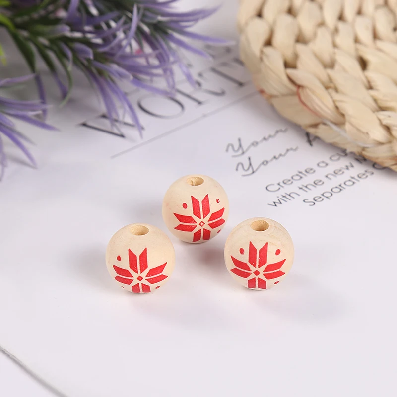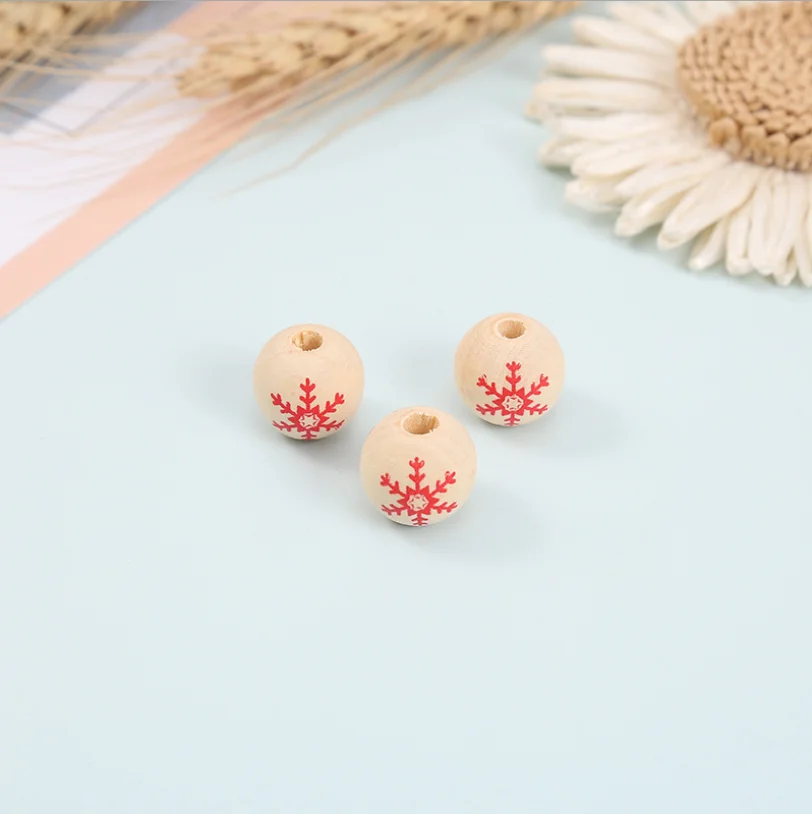 20 шт., 16 мм, рождественские деревянные бусины в виде шариков