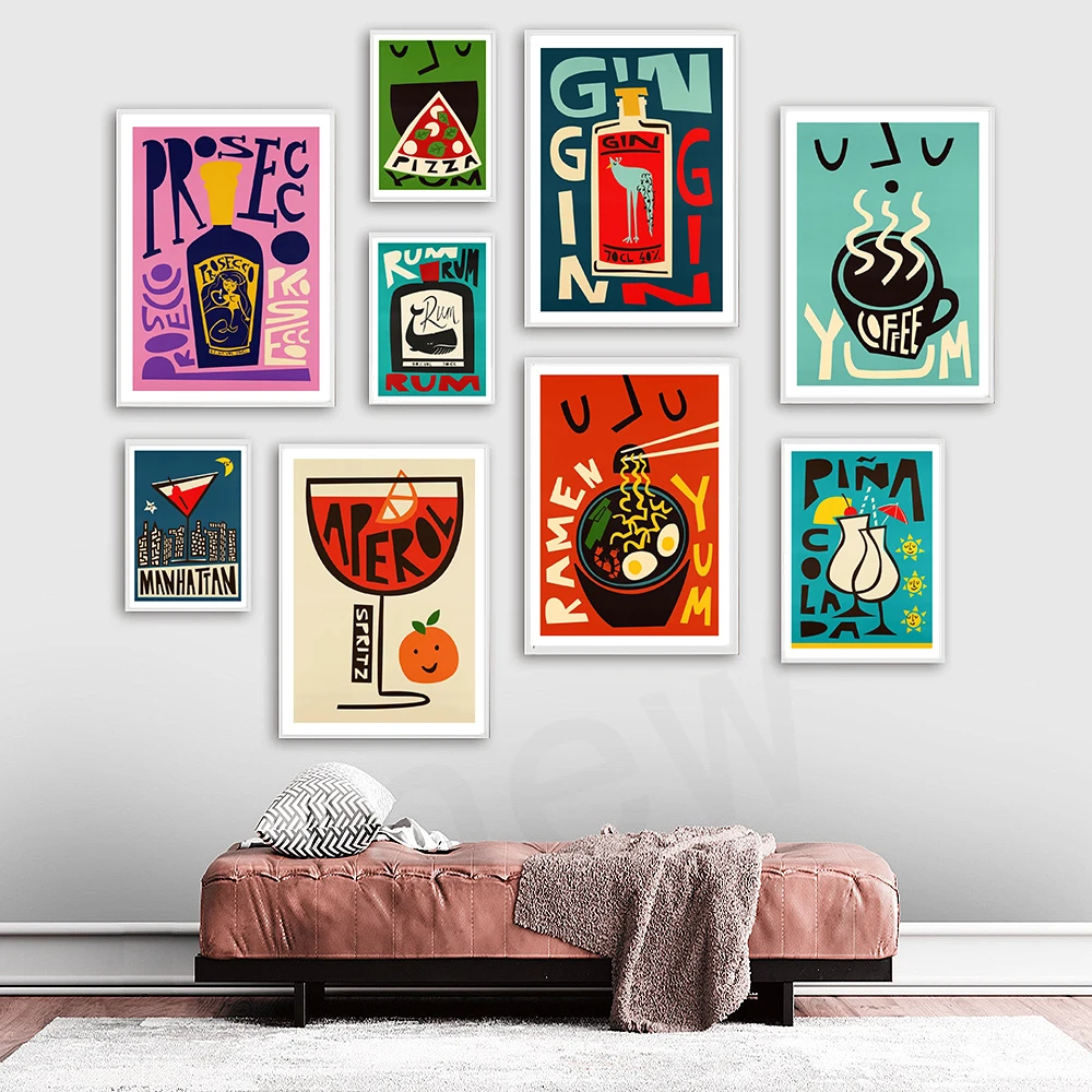 Постеры для фруктового сока и еды Aperol, принты, рисунок Ням кофе пиццы просекко, Картина на холсте, настенное украшение, картины для клуба, бара, шоу