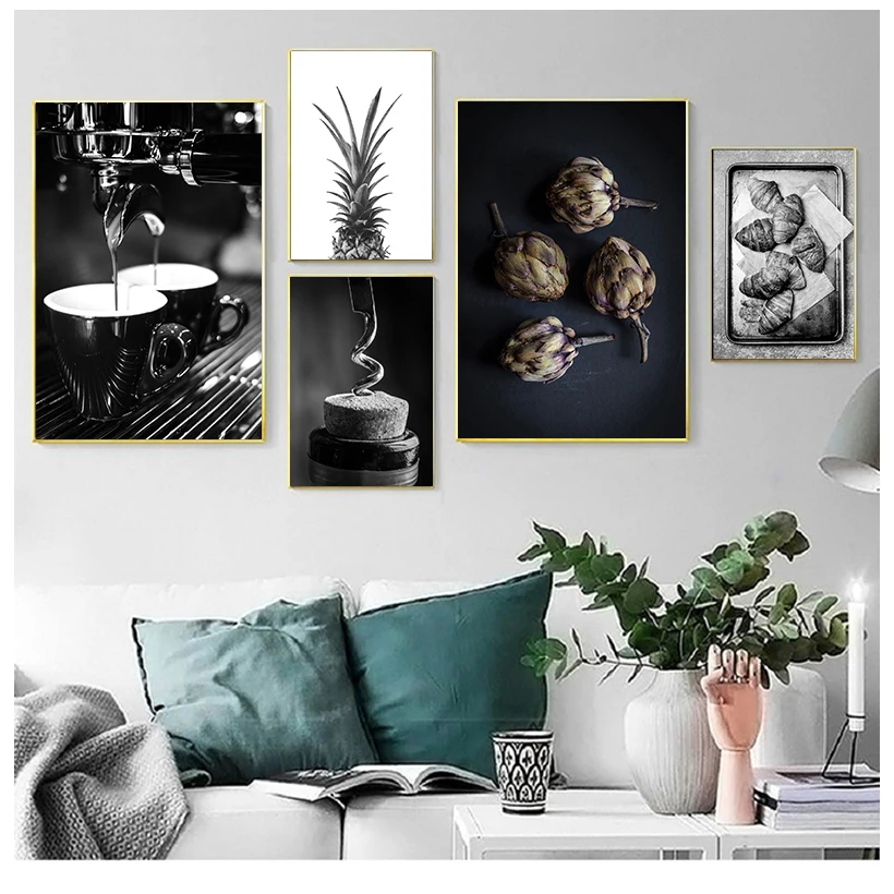 Настенный плакат на холсте в скандинавском стиле, черно-белые картины на стену, на кухню, бокал для вина, Современные художественные принты, Декор для дома, комнаты, кафе