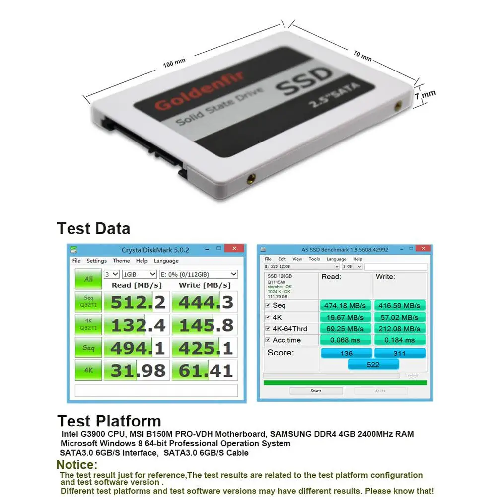 SSD 2,5 жесткий диск твердотельные диски 2,5 "внутренний SSD для настольного ноутбука Твердотельный накопитель 480240120603216 ГБ