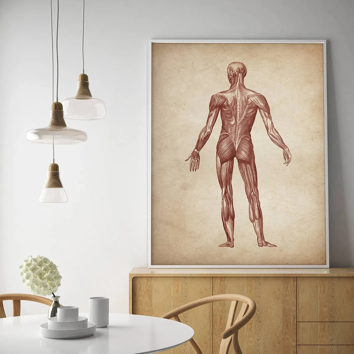 Винтажная человеческая мышечная анатомия, медицинская клиника, Настенная картина, скелет, органная система, холщовая печать, образовательный плакат