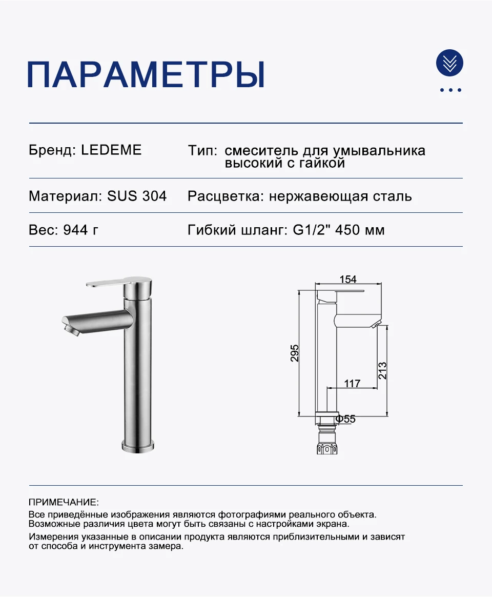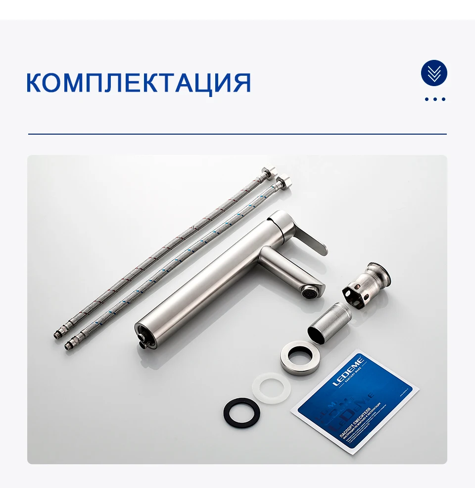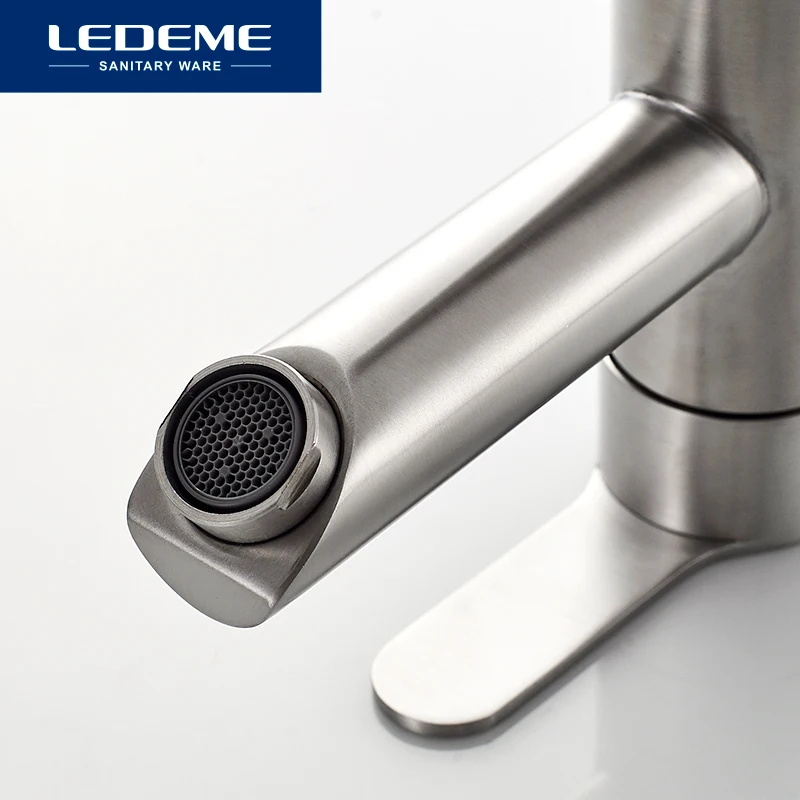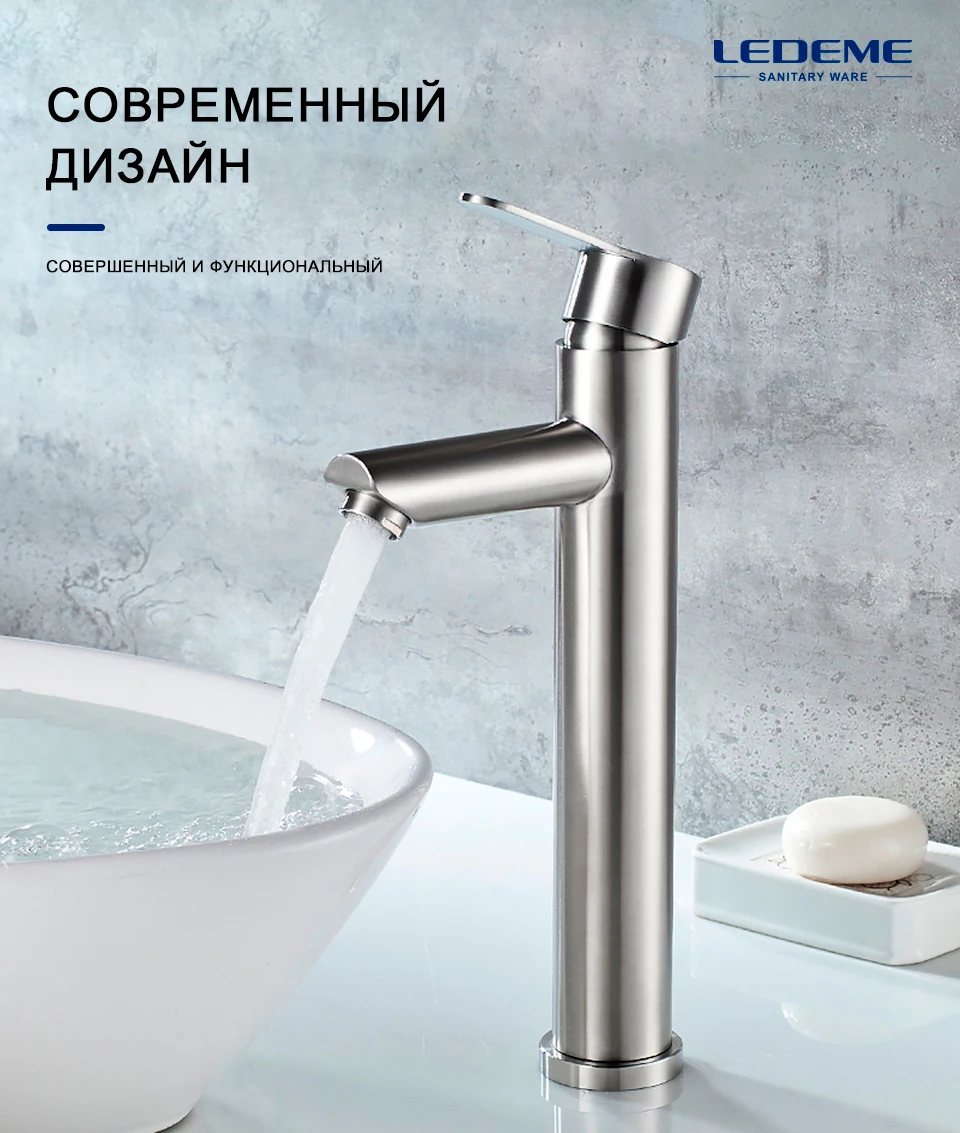 LEDEME Смеситель для умывальника из нержавеющей стали (SUS304), классический дизайн, высокий излив, L71103