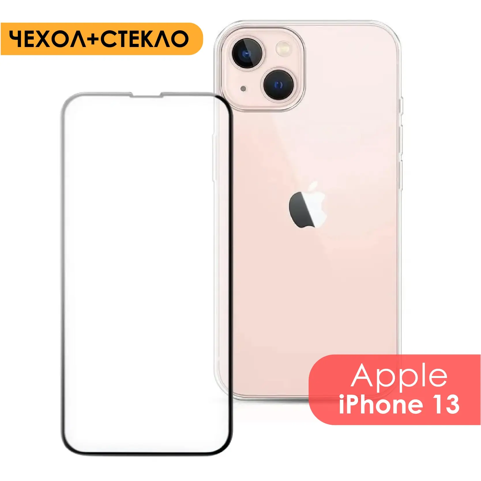 Комплект 2 в 1: Противоударный чехол + защитное стекло для Apple iPhone 13 ( Айфон 13 ). Накладка бампер