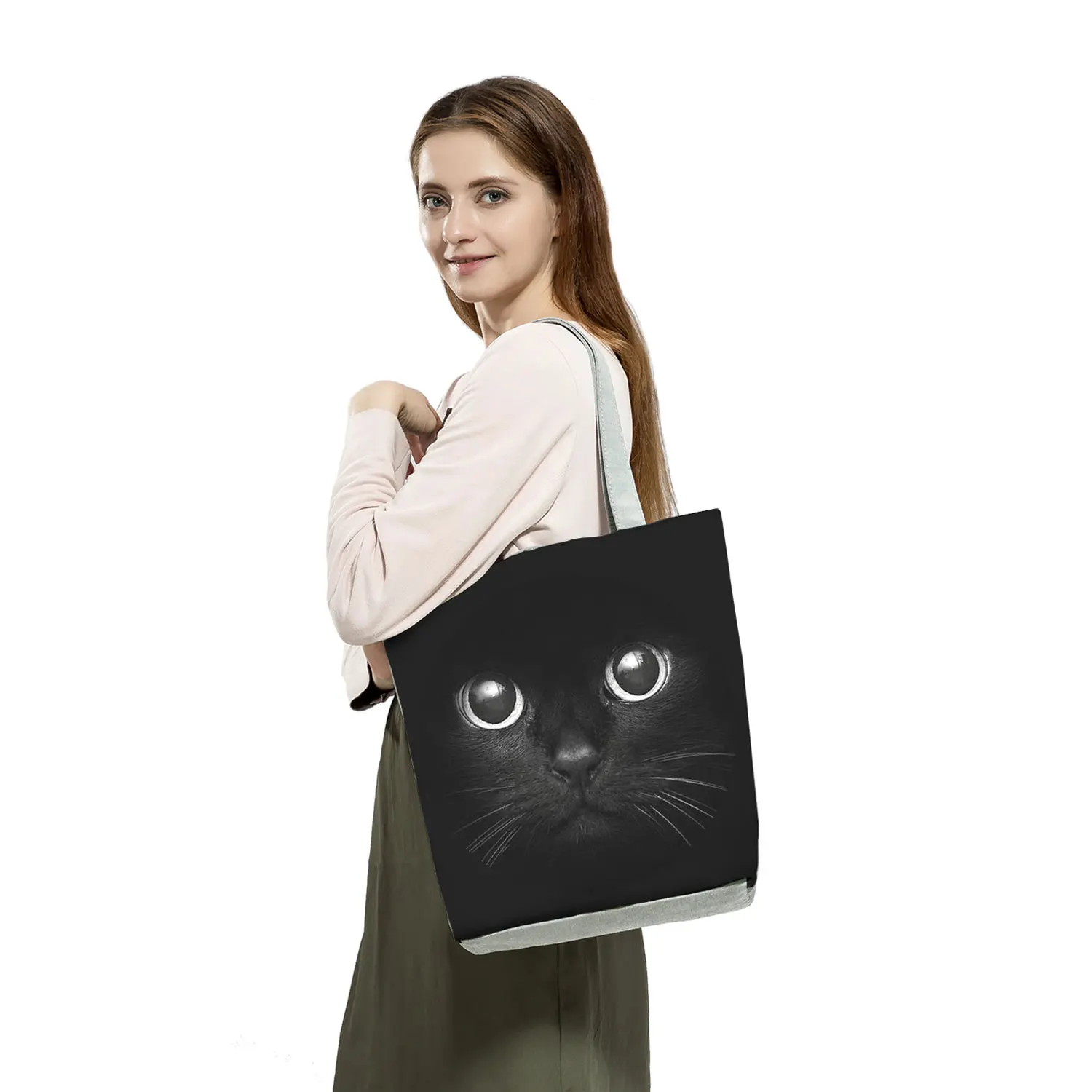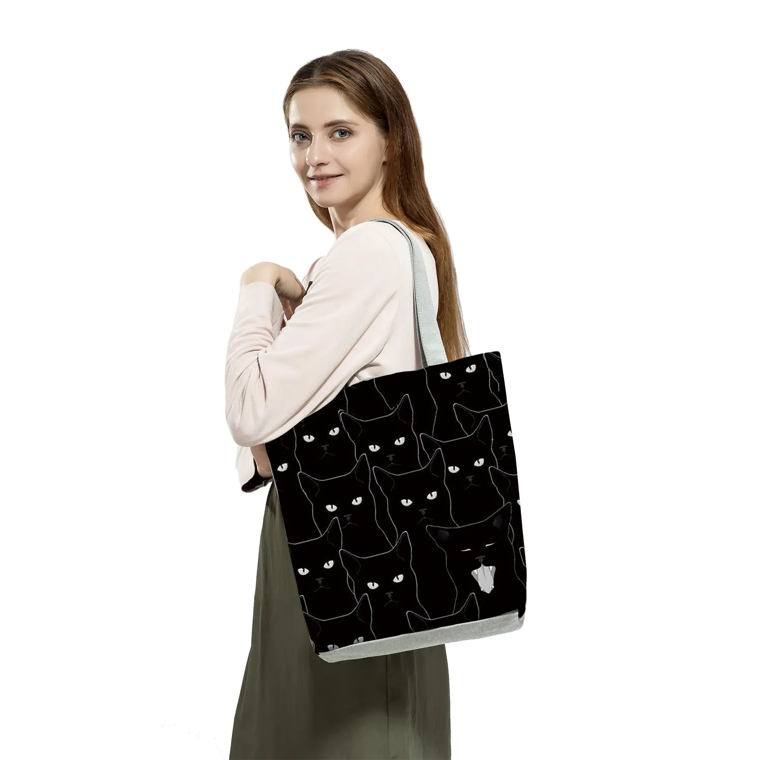 Женская сумка 2021 дизайн черная кошка печать сумка для покупок сумка для офиса многоразовые повседневные сумки на плечо на заказ Сумка-тоут дорожная пляжная сумка