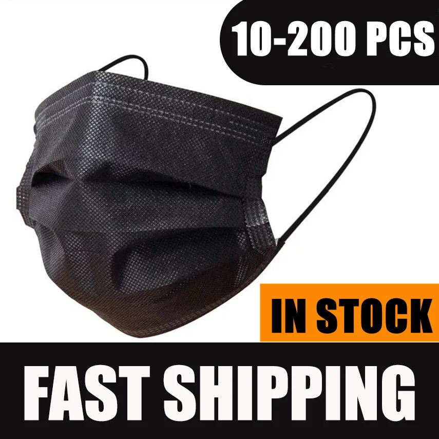 200/10/50/100 шт Черный Одноразовый нетканый 3-х слойная маска для лица дышащая маска с эластичным Earband дышащие взрослые маска для лица