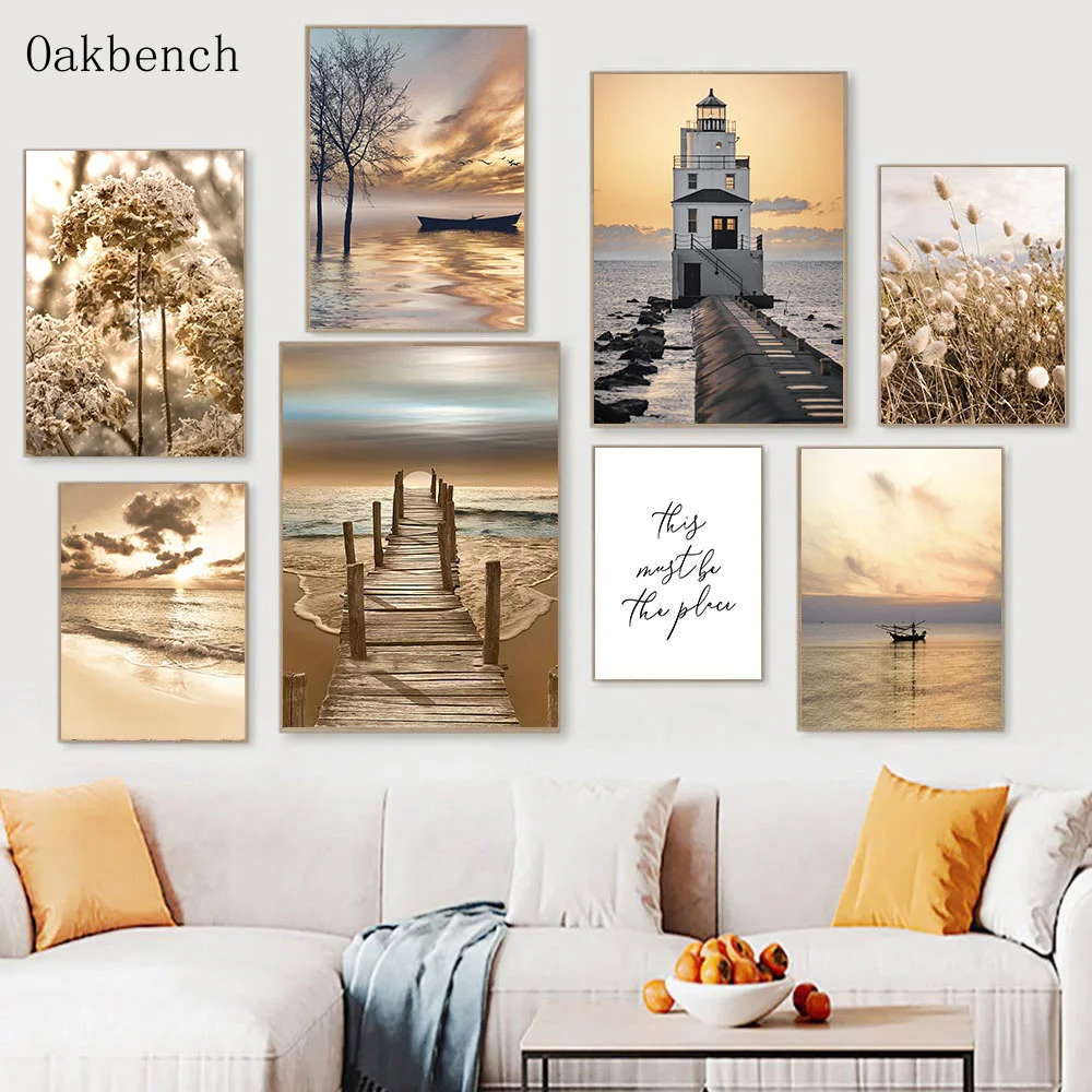 Настенные постеры с естественным пейзажем, пляжные художественные п...