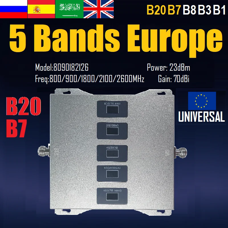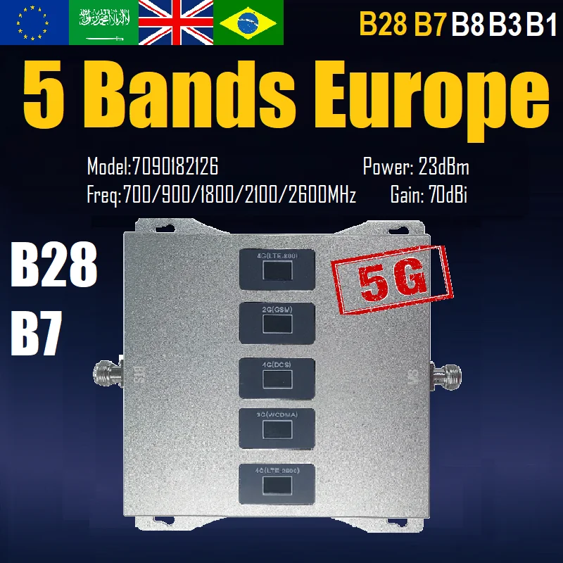 700 B28 5G B20 B5 800 1800 2100 B7 2600 усилитель Сотовой Связи Ретранслятор 2G 3G 4G Великобритания Испания Франция Италия Саудовская Бразилия Израиль