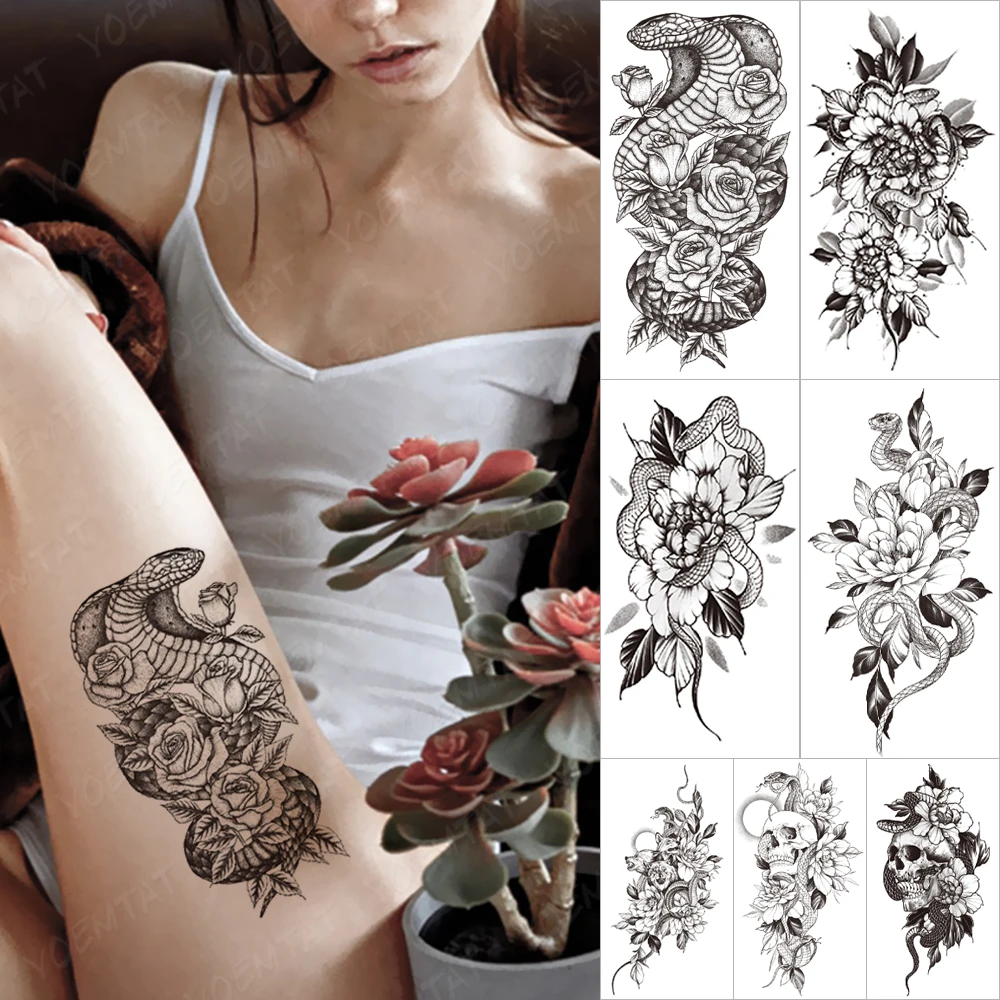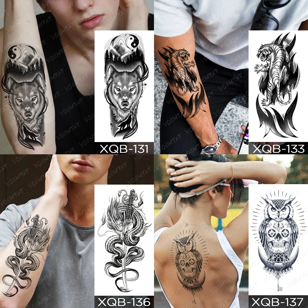 переводные татуировки временные наклейки тату Тату-наклейка переводная водостойкая с длинным рукавом, наклейка-змея, тигра, Льва, Египта, волка, черная линия, тату боди-арт, искусственные татуировки для мужчин и женщин