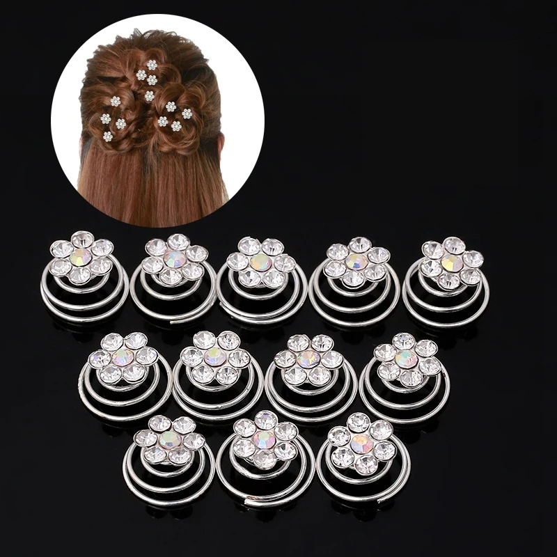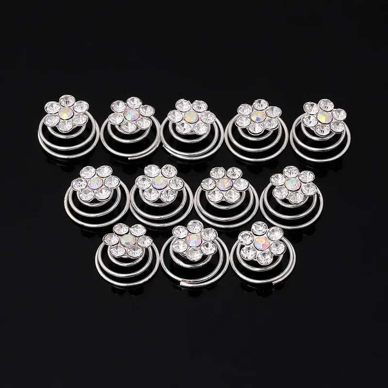 2/5/6/10/12 шт. свадебные аксессуары для волос, с украшениями в виде кристаллов и цветов, псевдо жемчуг, заколки для волос, водоворот Спираль Твист женская заколка для волос орнамент