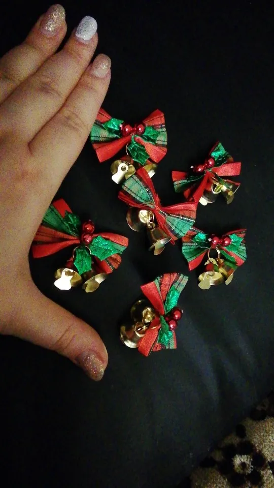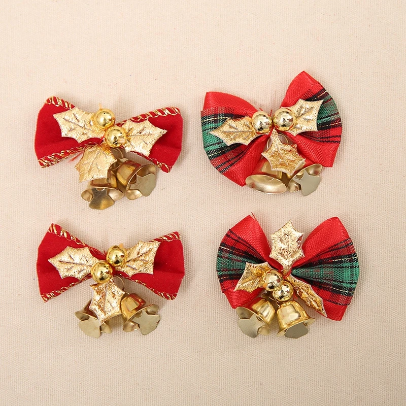 6 шт. Рождественский бант с колокольчиками, украшения для рождественской елки, подвесные Подвески, украшение для новогодвечерние, игрушка для домашних животных, подарок 5x4 см