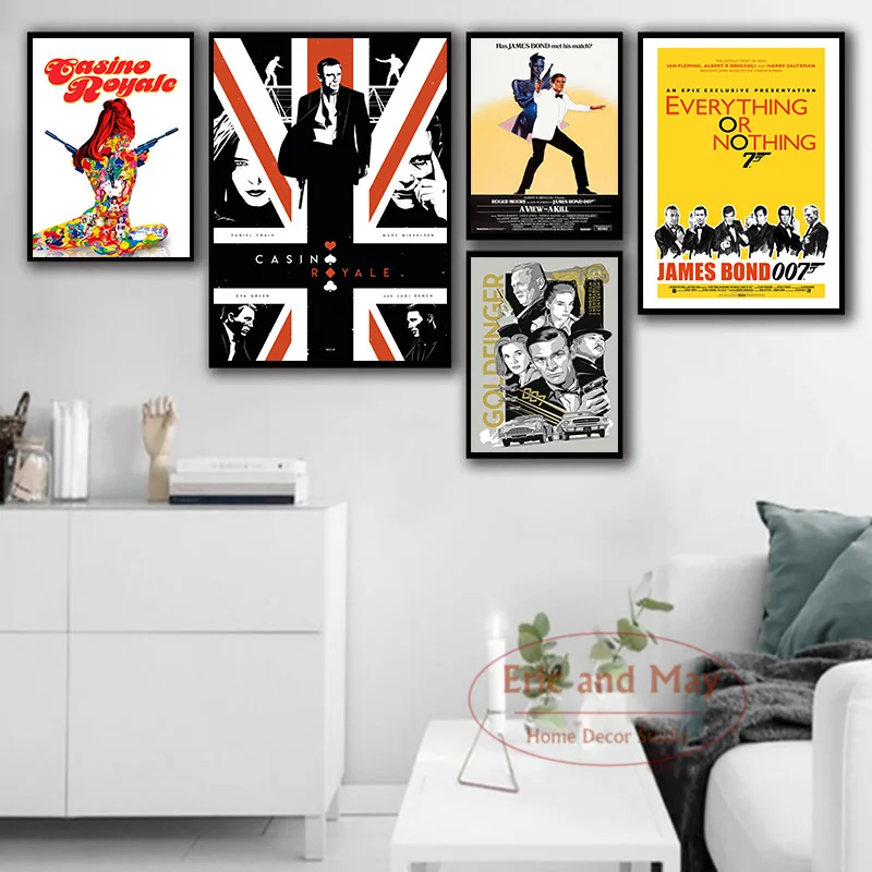 007 винтажные кино Джеймс группы плакаты и принты настенное искусство холст живопись картины горячий современный стиль эстетика декор комнаты Куадрос