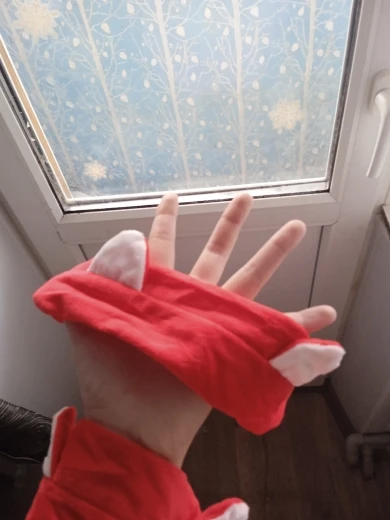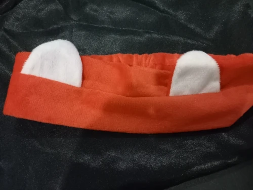Ободок на голову с ушками из мягкого флиса. Сзади продета резинка, поэтому растягивается. Сам ободок красного цвета, а обратная сторона ушек белого цвета. Продавец отправил товар быстро.