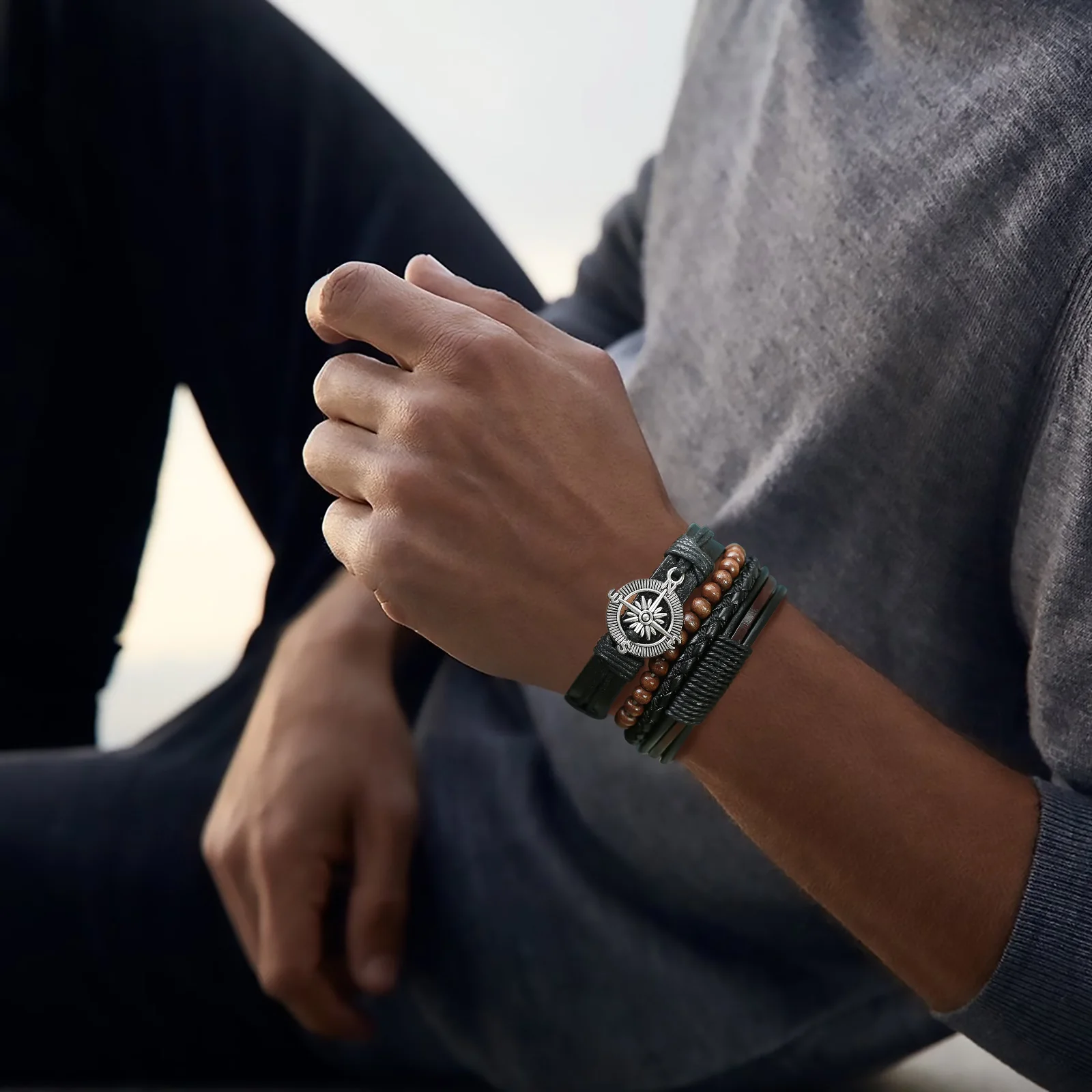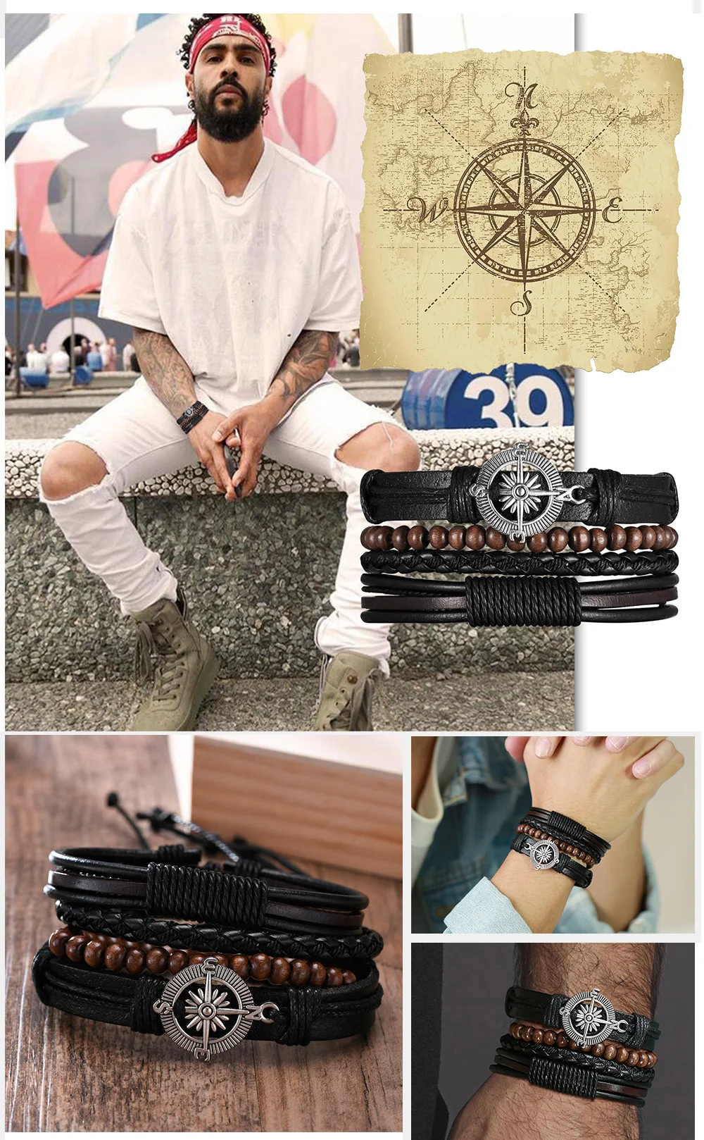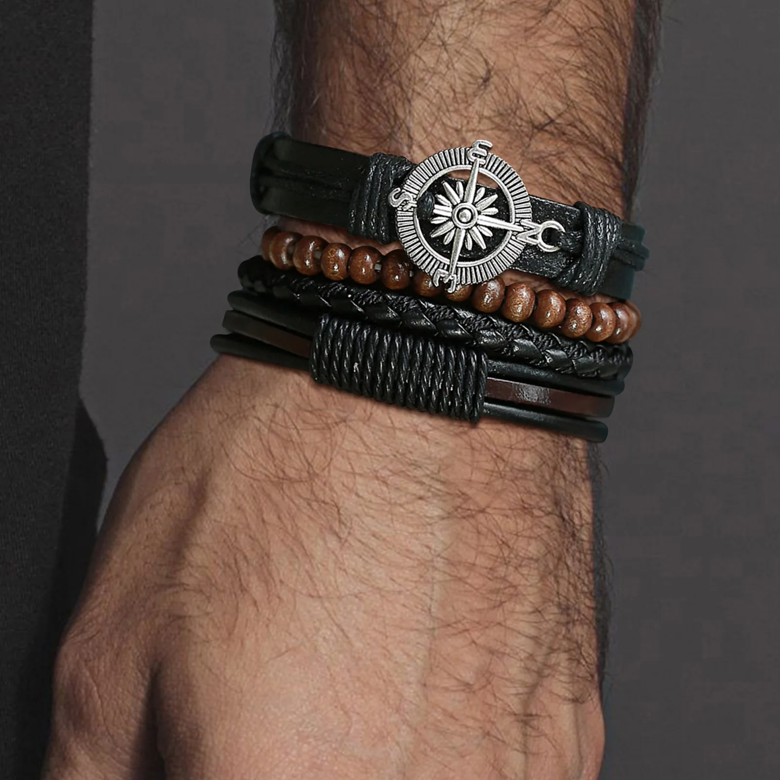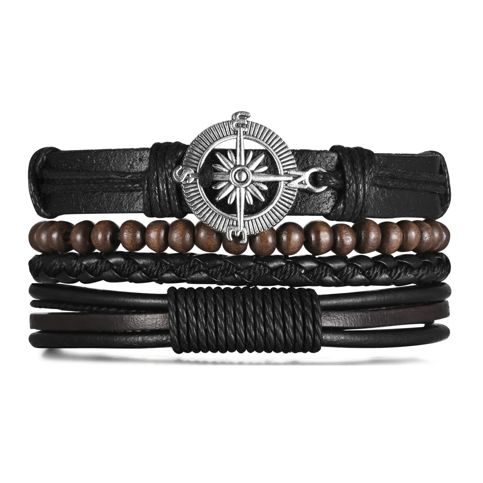 Браслет с компасом, мужские многожильные кожаные браслеты, регулируемый кожаный браслет для мужчин, для мужа, для парня, для него