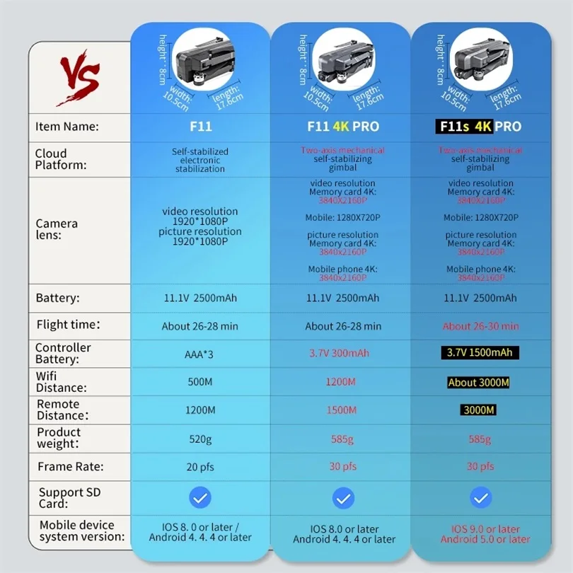 Время работы и расстояние двух типов дронов отличаются, и внешний вид модели отличаются. Пожалуйста, обратите внимание на покупку