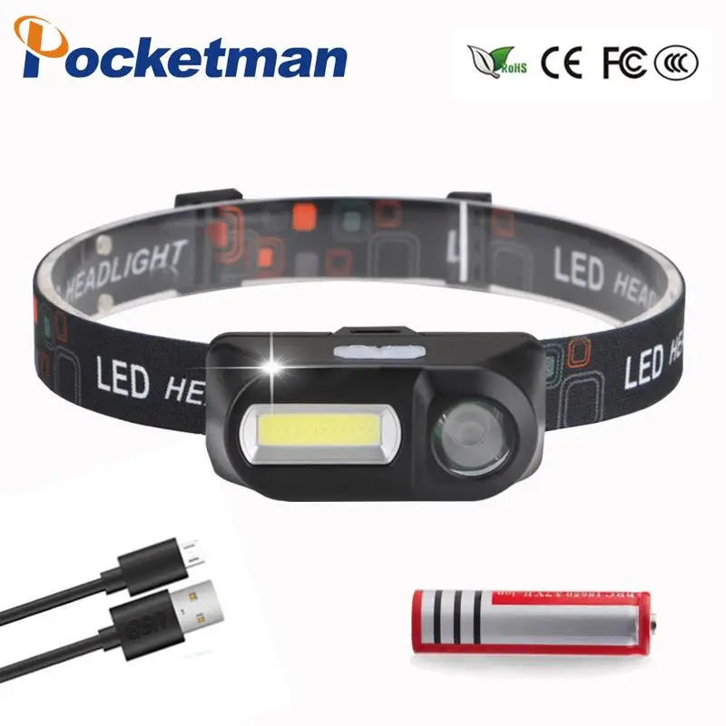 Портативный светодиодный налобный фонарь COB, светодиодный налобный фонарь + фонарик, налобный фонарь на 2 аккумуляторах 18650 для рыбалки, спорта, работы
