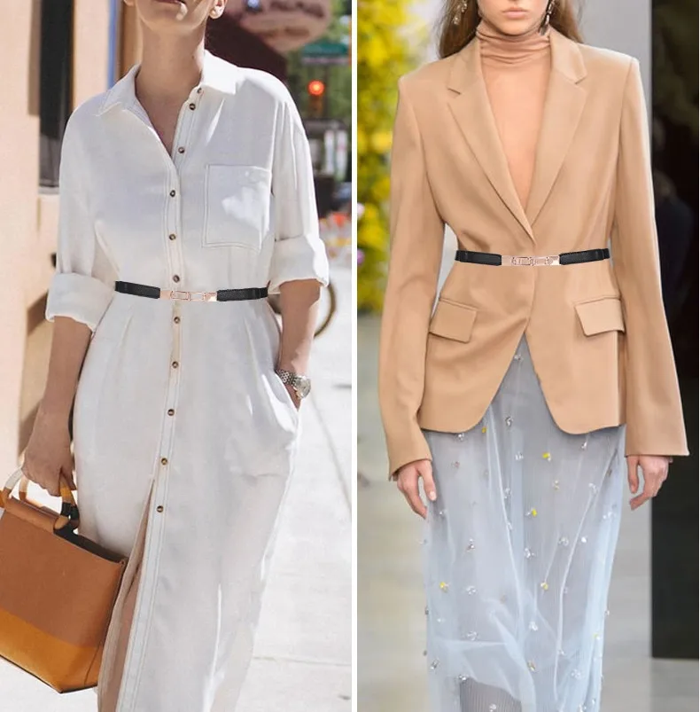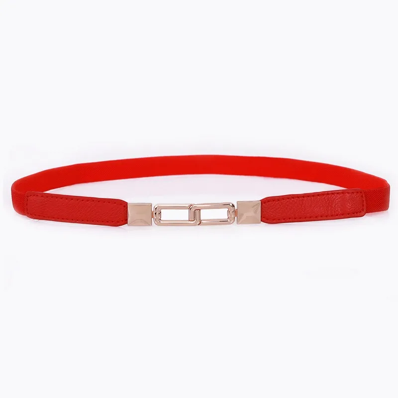 Новый дизайн, тонкие ремни для платья, ремень с пряжкой и золотой цепочкой, красный эластичный пояс с уплотнением, аксессуары для юбки девушки