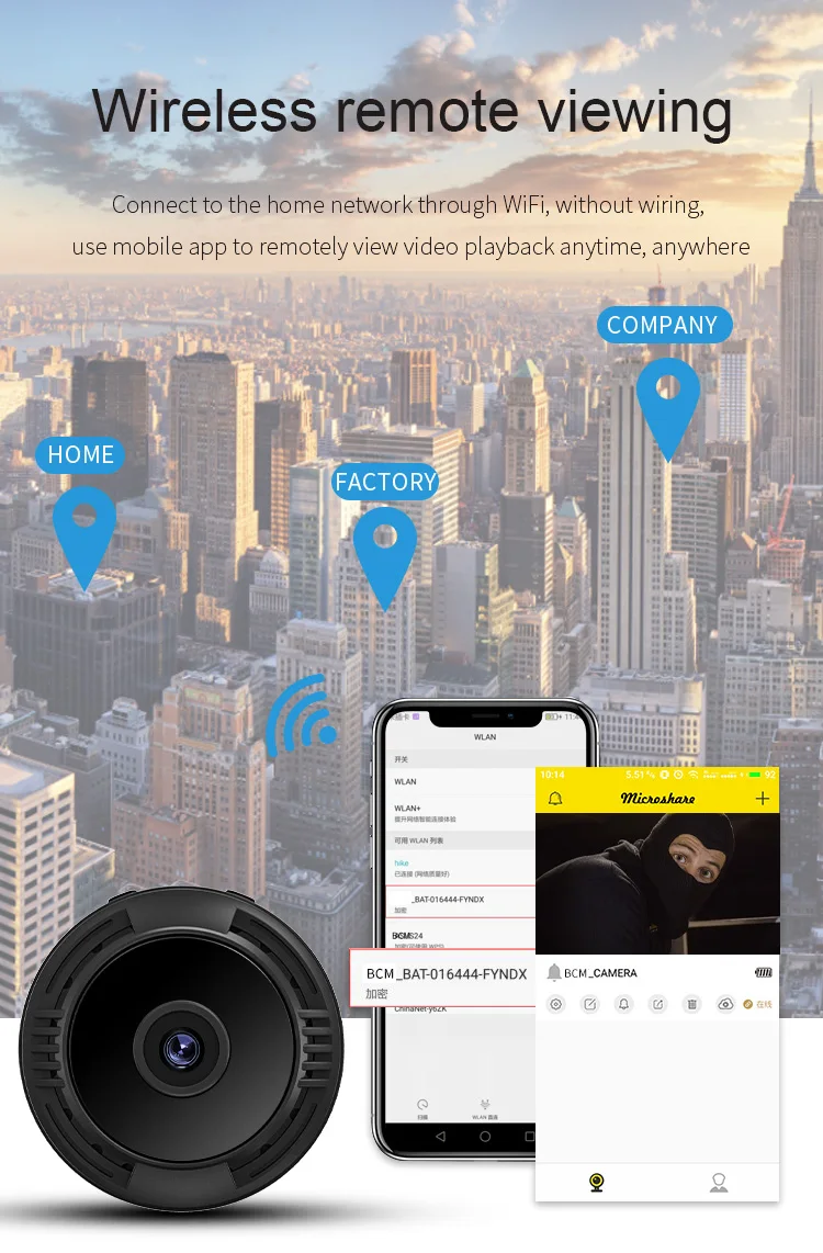 HD Wifi мини камера ночное видение Обнаружение движения микро камера Удаленная домашняя охранная видеокамера