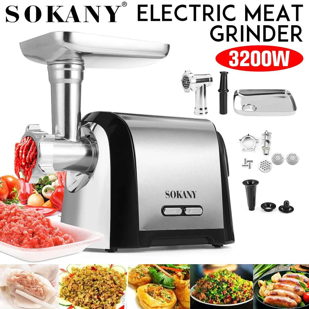 Электрическая мясорубка из нержавеющей стали, 3200 Вт, мощная мясорубка, домашний колбасный шприц, мясорубка, слайсер, Кухонный комбайн, 220 В