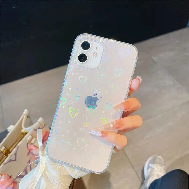 Модный голографический чехол с сердцем для Iphone, прозрачный чехол...