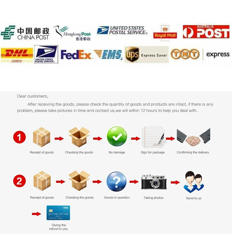 1) Мы гарантируем отправку в течение 72 часов после подтверждения оплаты (за исключением праздничных дней). 2) Время доставки прибл. От 14 до 20 рабочих дней (за исключением субботы и воскресенья, праздничные дни) в большинство стран США/Великобритании/Австралии 3) Пожалуйста, свяжитесь с нами, если вы не получили посылку в течение 30 дней 4) Пожалуйста, убедитесь в правильности адреса доставки. Мы не несем ответственности за любые неправильные или недоставляемые адреса.