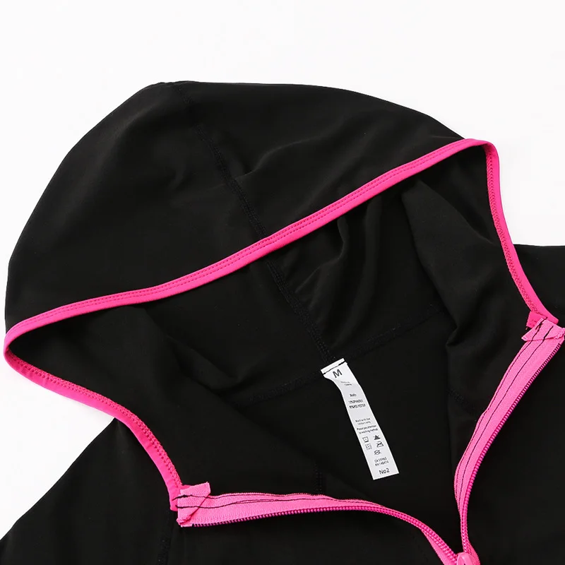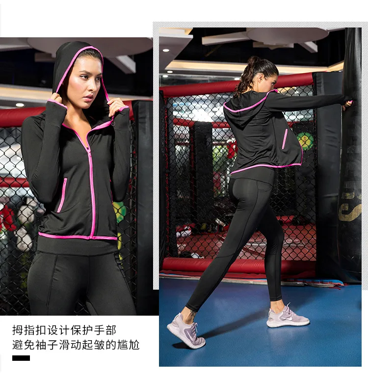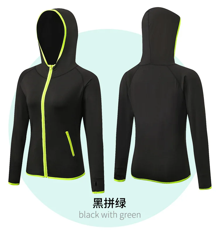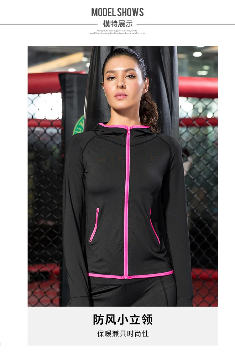 Женский Зимний пуловер с капюшоном для фитнеса, тренировочная кофта для бега, быстросохнущее пальто на молнии с цветными блокировками