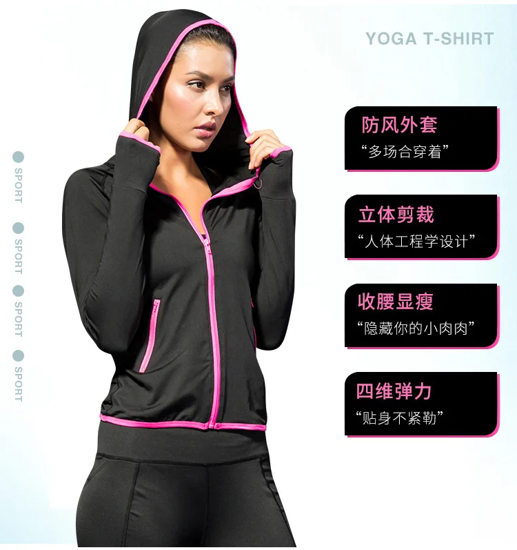 Женский Зимний пуловер с капюшоном для фитнеса, йоги, тренировок, пробежек, свитер, цветная блокировка, на молнии, быстросохнущее пальто