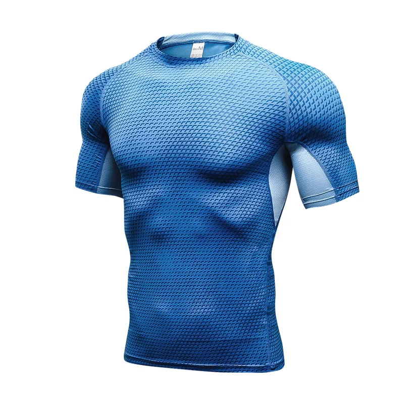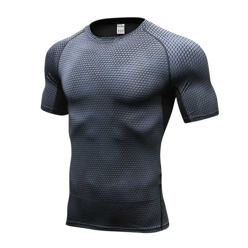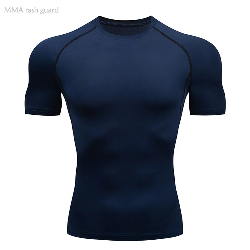 Компрессионная Мужская футболка для бега, Однотонная футболка с круглым вырезом и коротким рукавом, топ для спортзала, Спортивная рубашка для мышц, Быстросохнущий тренировочный топ