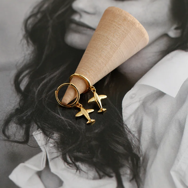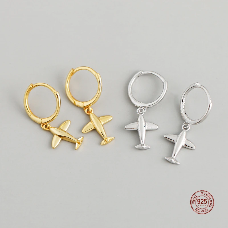LKO Серьги-кольца из настоящего стерлингового серебра 925 пробы для женщин, роскошные серьги-кольца в виде самолета в стиле панк, ювелирные изделия в подарок, модные модные серьги для девочек