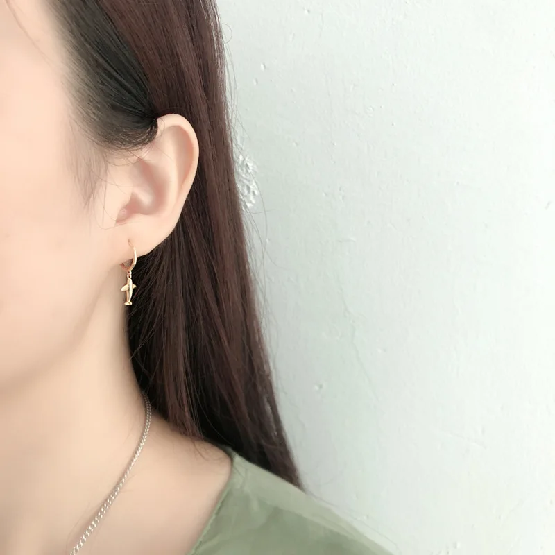 Серьги-кольца XIYANIKE серебристого цвета в форме самолета для женщ...