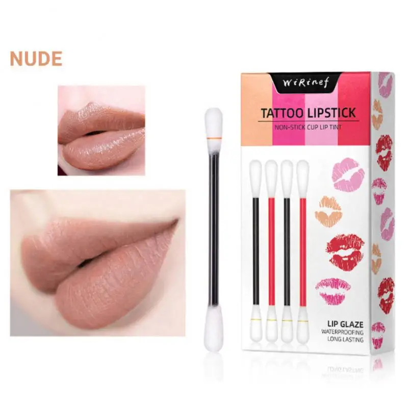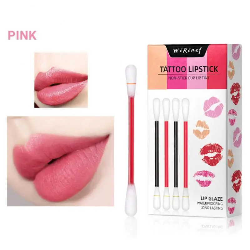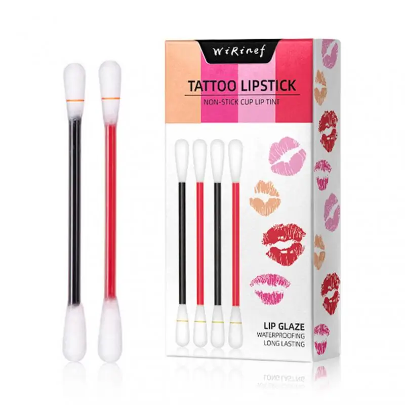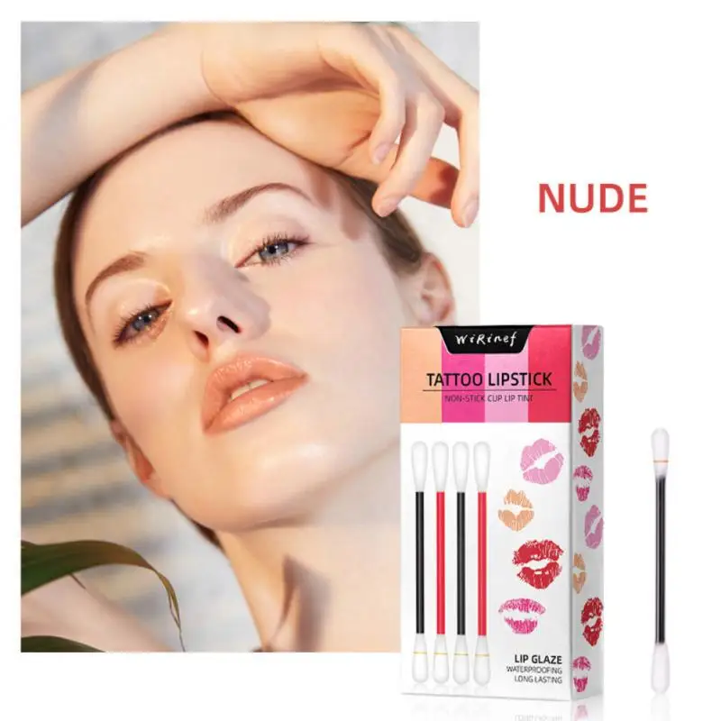 Помада с глазурью для губ, ватный тампон, кисть для губ в коробке, окрашенная губная помада, жидкая Одноразовая чашка для губ, жидкая помада, 4 цвета, TSLM1
