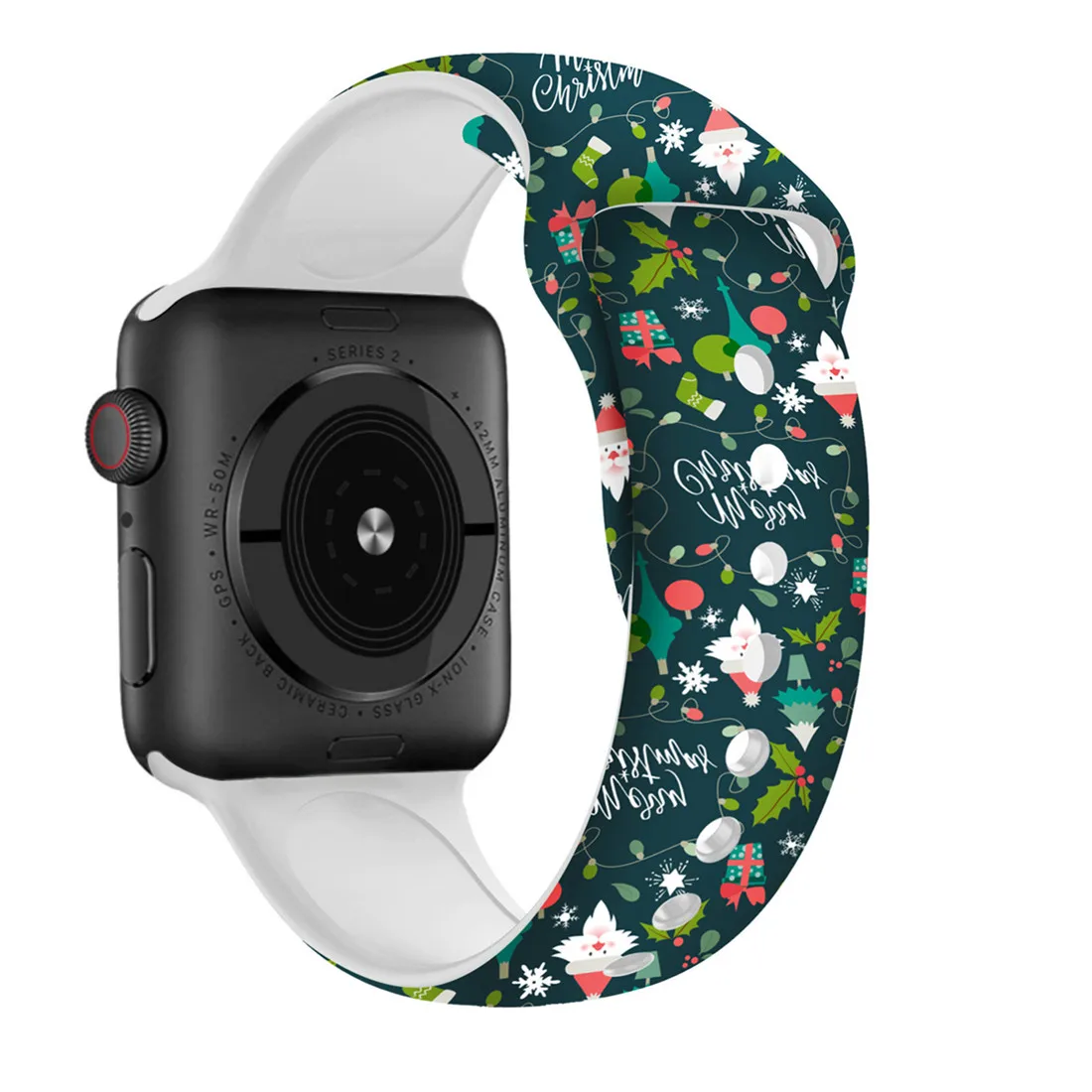 Рождественский спортивный ремешок для Apple Watch band 44 мм 40 мм 38 мм 42 мм с мультяшным принтом, ремешок для часов, браслет IWatch Series 5 4 3 2 1 6 SE