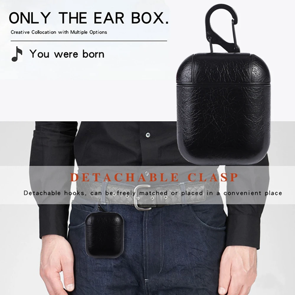 Чехол для наушников Airpods 1, защитный чехол для беспроводных наушников Bluetooth, кожаный чехол для хранения, сумка для зарядки с крючком