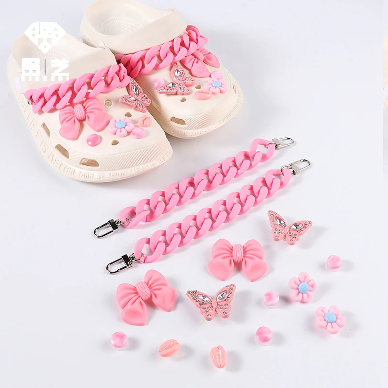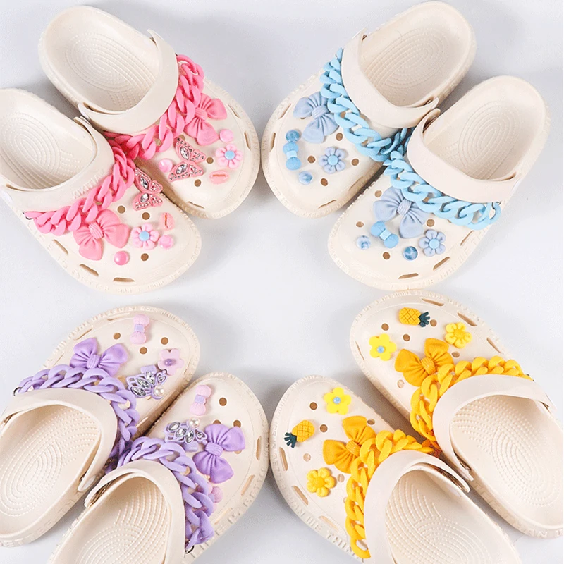 10-14 шт.компл. комбинация Croc амулеты из ПВХ аксессуары для обуви DIY обувная цепочка милый цветок девочка подарок для украшения обуви Jibz