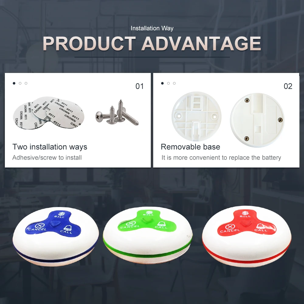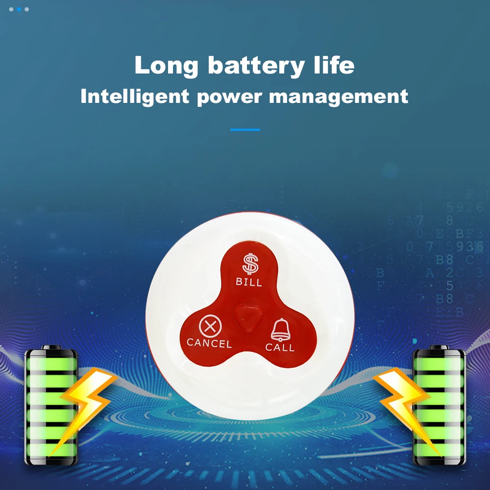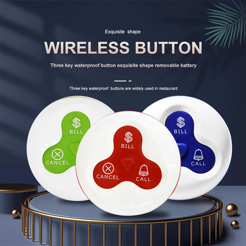 Во-первых, кнопки вызова вставляются или ставятся на стену или на стол, когда у гостей есть какие-либо услуги, он или она нажимает кнопки вызова, приемник (светодиодный экран или пейджер часов) получите сигнал с вибрацией или звуком, показывая номер таблицы, Тогда официант будет знать, какой стол будет подан.