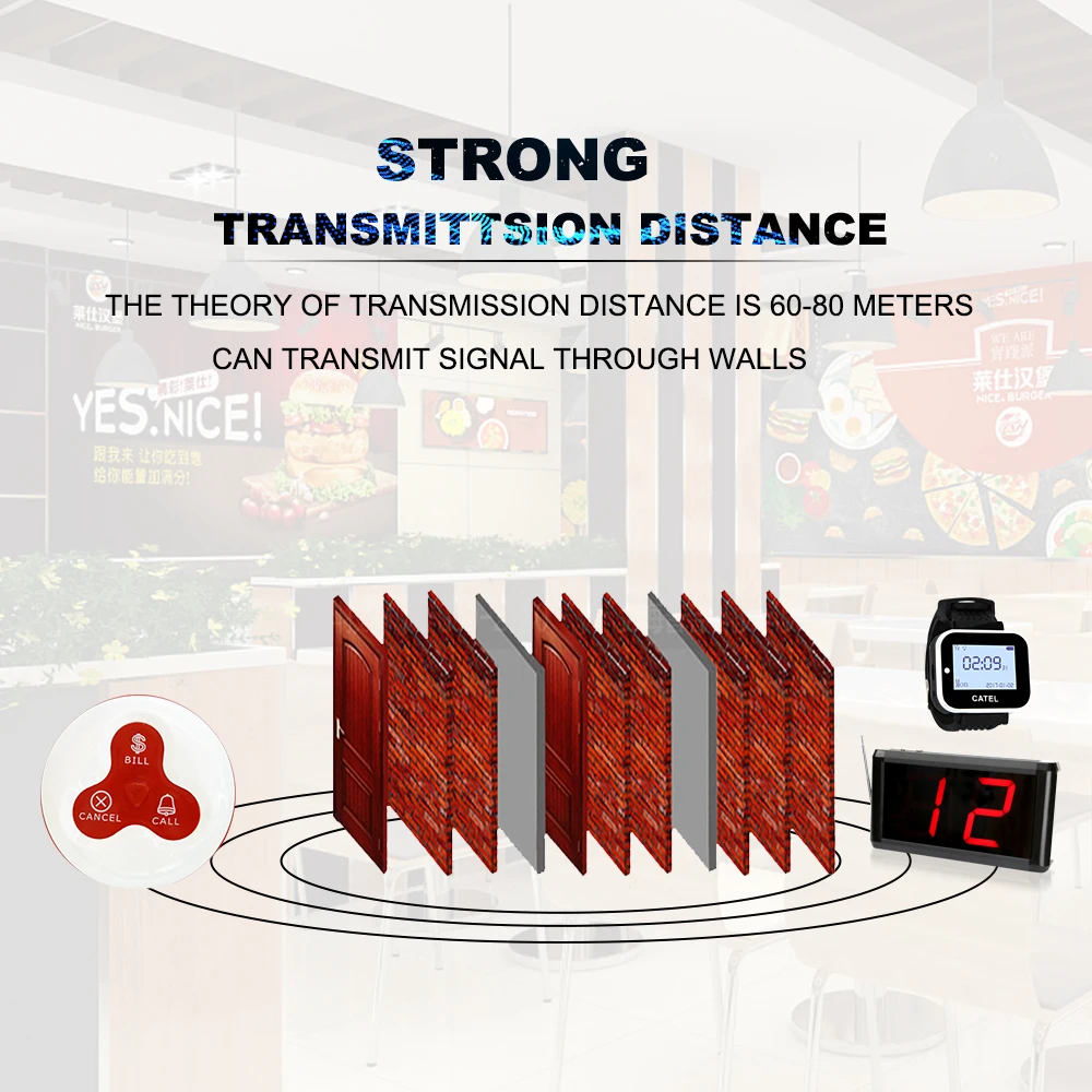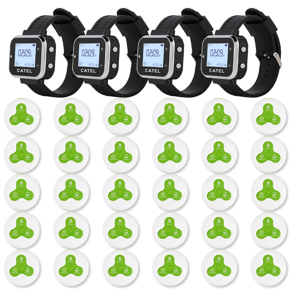 Беспроводная система вызова CATEL, 30 кнопок вызова, передатчик, 4 пейджера для ресторана, официанта, зуммер