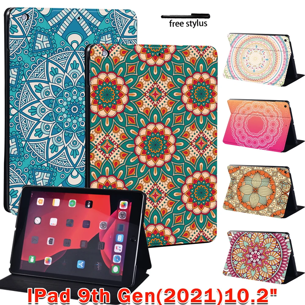 Чехол для Apple IPad (2021) 9-го поколения, 10,2 дюйма, кожаный чехол-подставка с рисунком мандалы для планшета, Чехлы для ipad 9