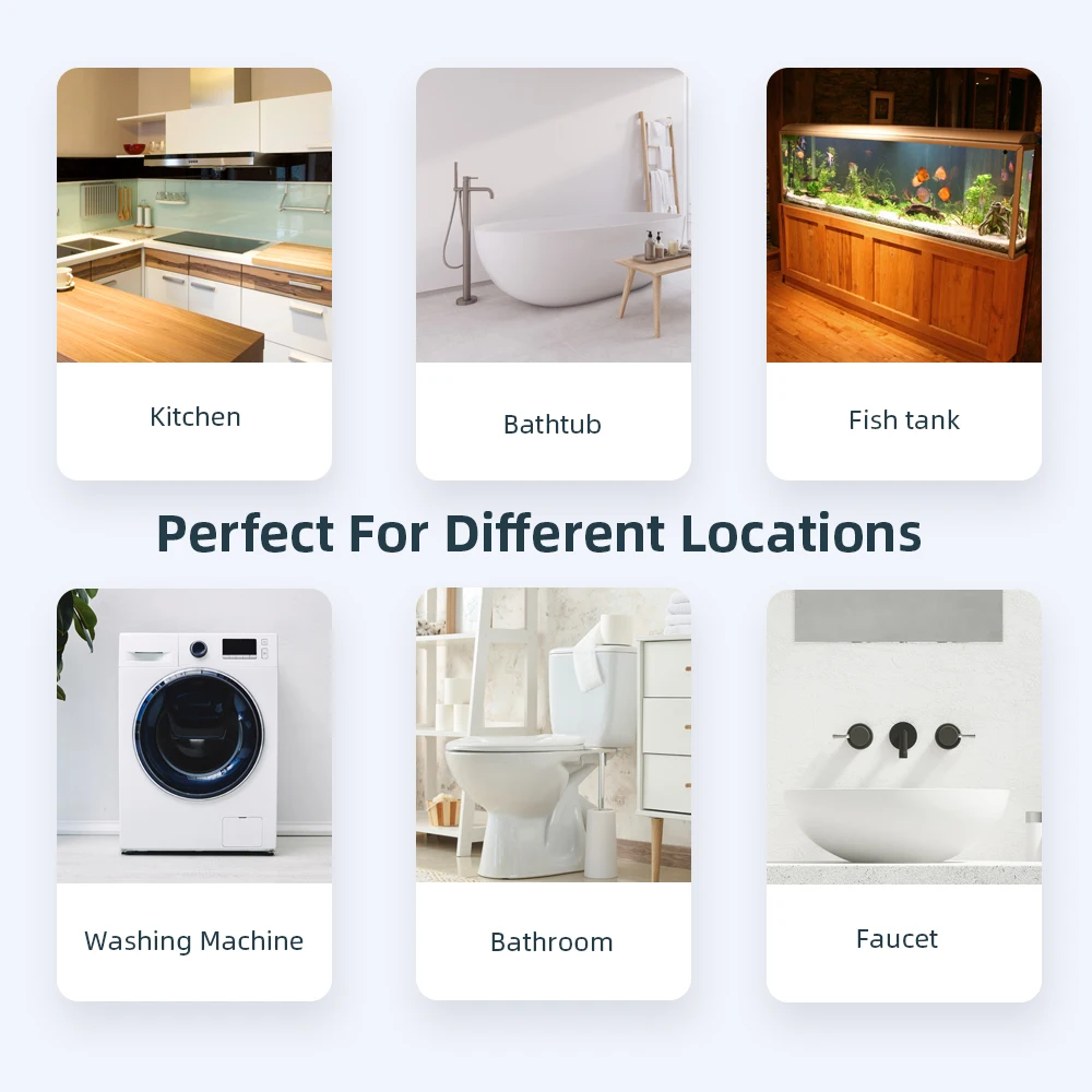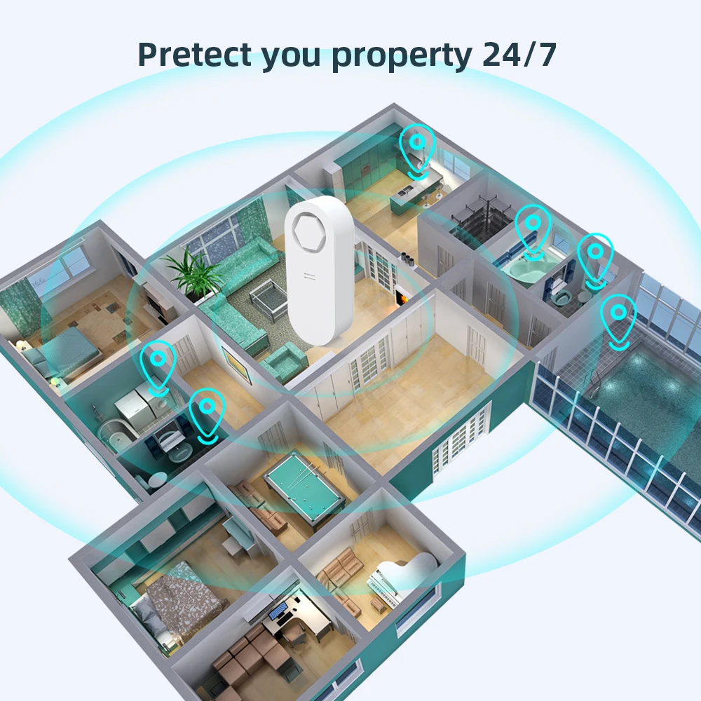 Предупреждения об утечке и утечке: Датчик воды поставляется с 2 группами зондов для заднего детектора воды и 1 группой передних зондов для обнаружения капель труб. Используйте приложение, чтобы назвать каждый датчик.