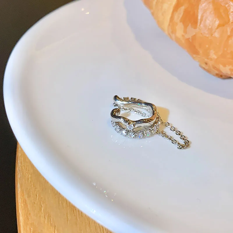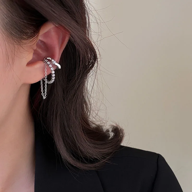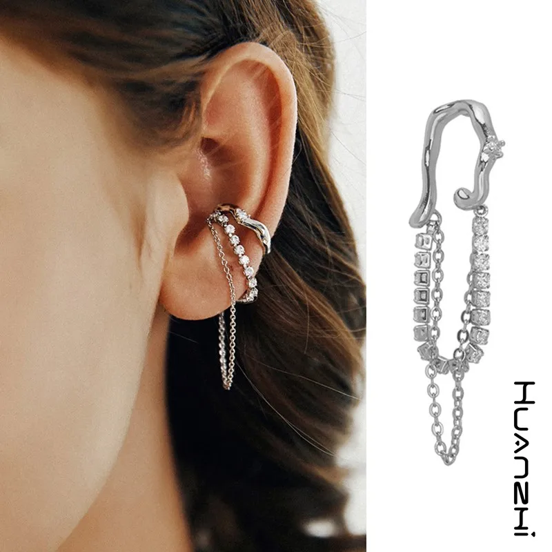 HUANZHI 2021 новые модные циркониевые геометрические серьги-кисточки неправильной формы для женщин без проколов Длинная цепочка клипса для ушей Кафф