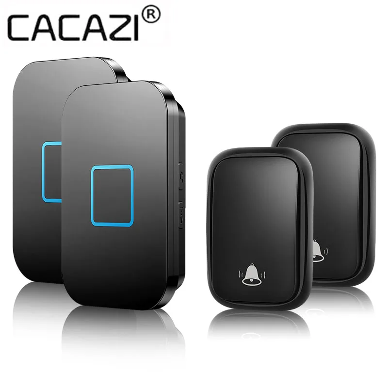 CACAZI 60 колокольчиков, 110 дБ, 5 громкость, Беспроводной Автономный дверной звонок без батареи требуемая Кнопка US EU UK AU штекер приемника 150 м Пульт дистанционного управления