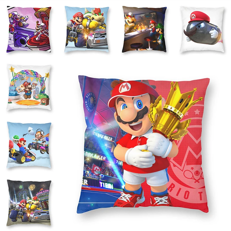 Наволочка в виде Супер Марио, короткая плюшевая декоративная подушка для дома, наволочка для подушки с персонажем из мультфильма Йоши, Луиджи, боусера, подарок на день рождения